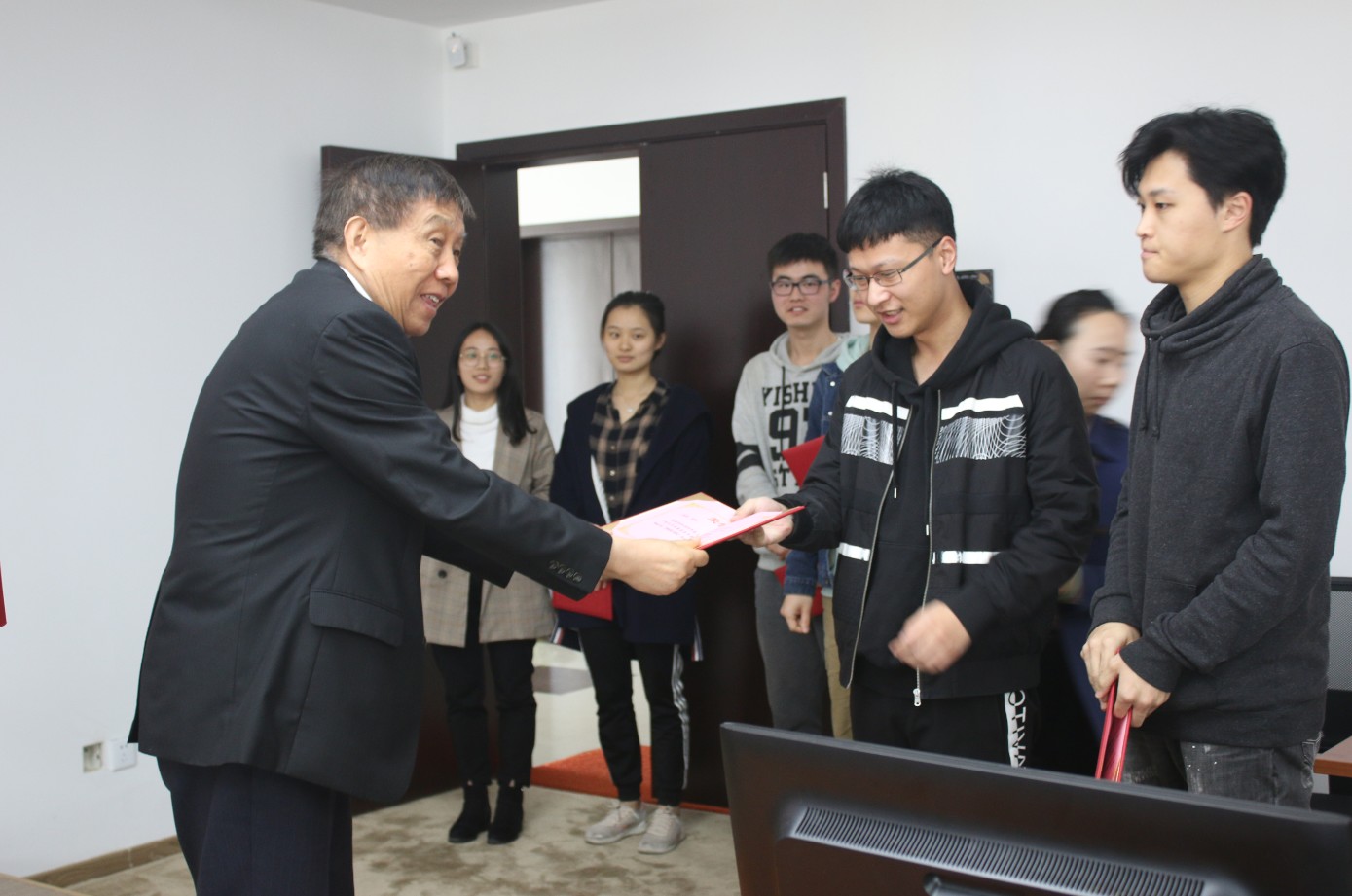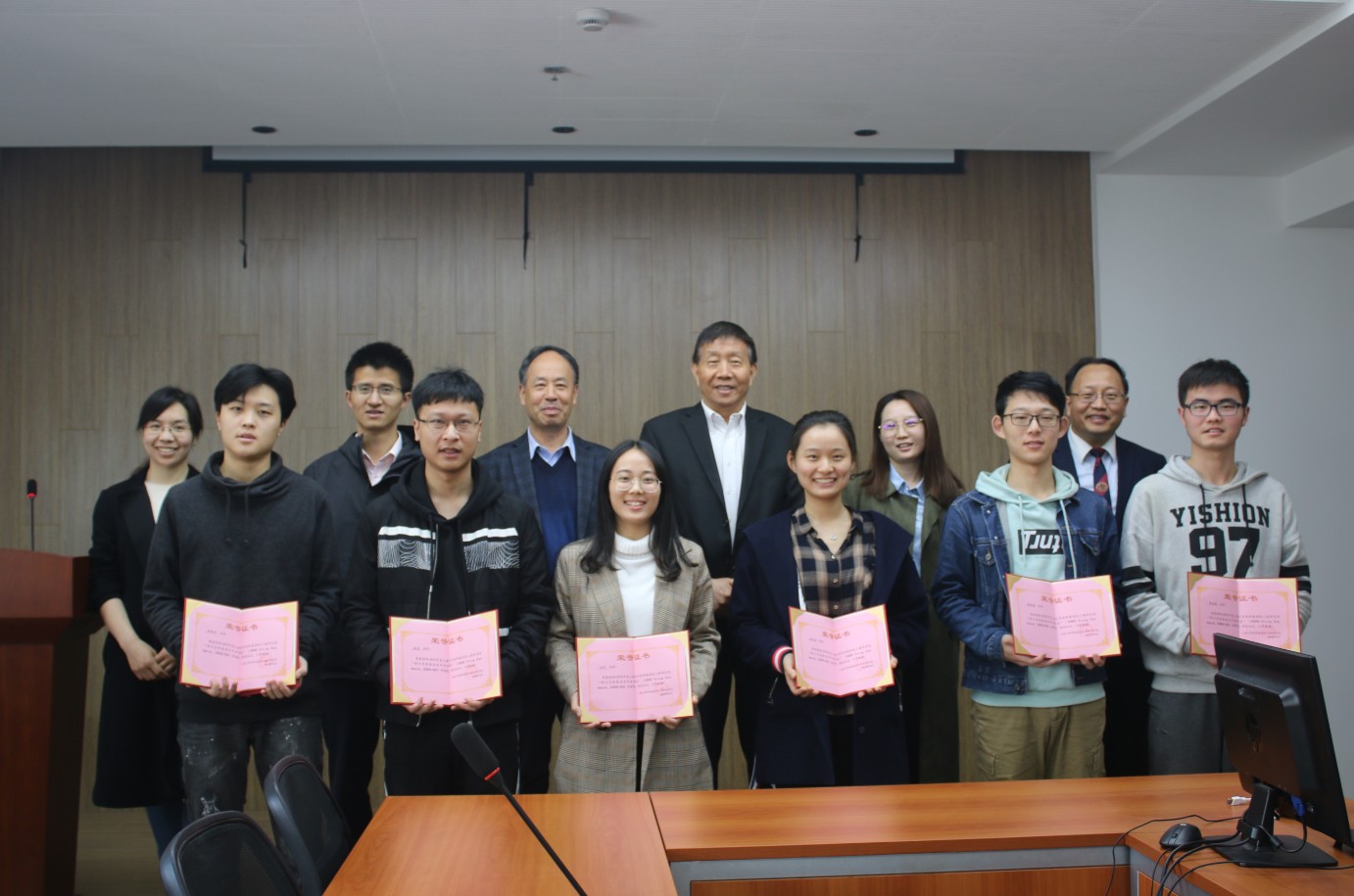 本次颁奖的对象是2018-2019年度材料设计科学与工程专业的朱瑞杰、张家齐、张昱、杨辰迪、包恬、薛凯楠、陈述高等7名本科生鄂尔多斯奖学金获得者。上海大学材料基因组工程研究院院长、中国科学院院士张统一教授,鄂尔多斯集团公司代表陶淼博士,钱伟长学院党总支副书记沈青松,研究院常务副院长张金仓教授、副院长刘轶教授,研究院制备与表征技术中心主任冯凌燕教授分别为获得卓越奖、优秀奖、创新奖的本科生颁发了获奖证书。张院士要求获奖同学们要不辜负鄂尔多斯集团设立奖学金的宗旨,奋发努力,发扬积极进步、开拓创新的精神。